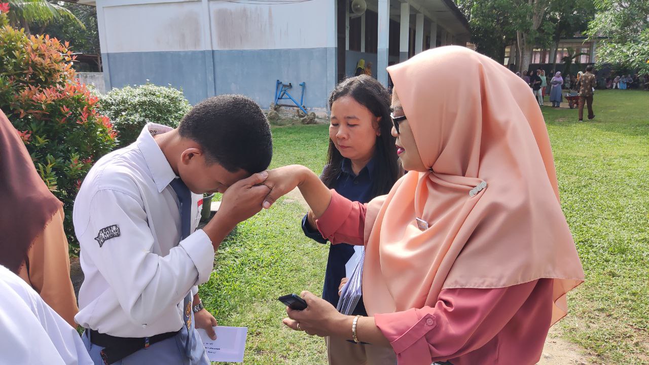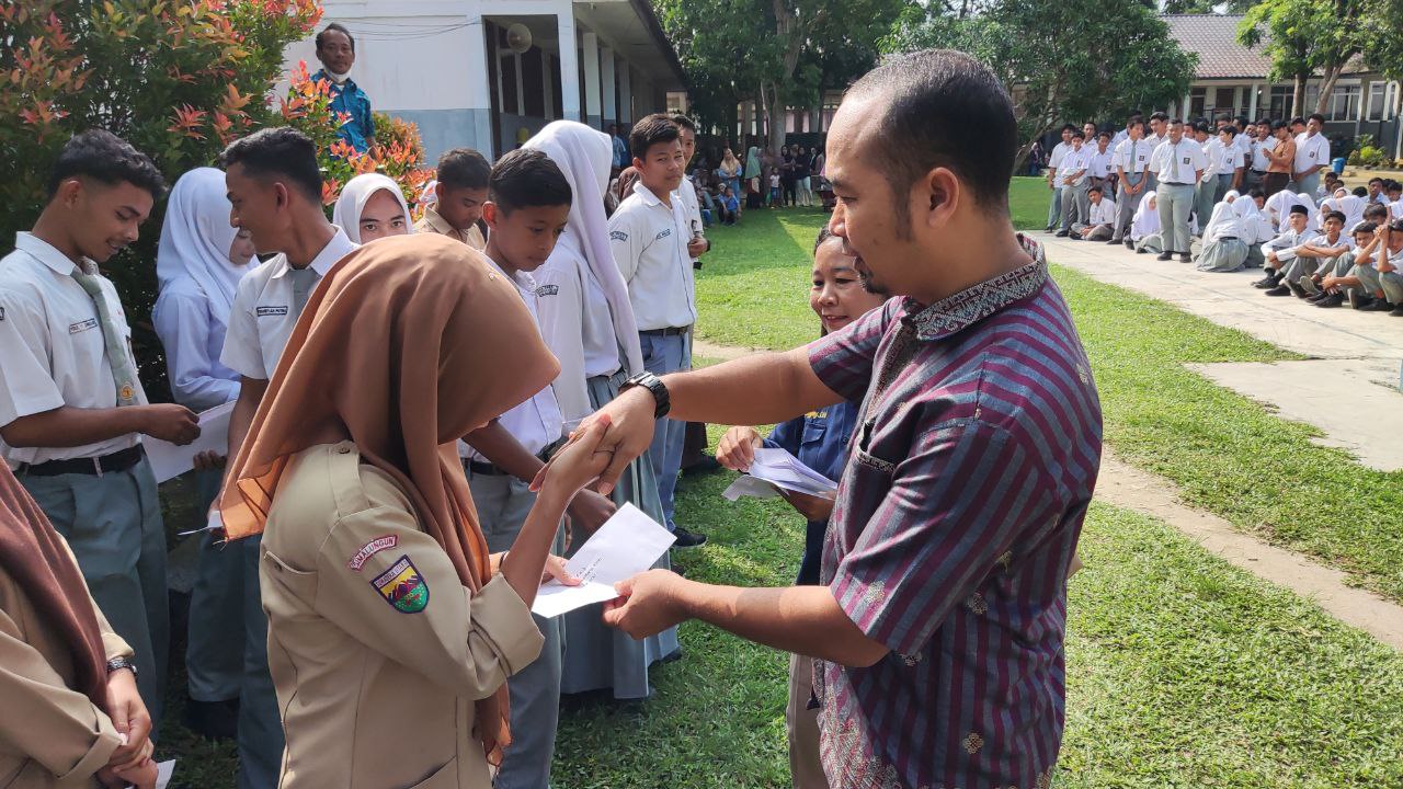 Seluruh orang tua siswa diundang untuk menerima rapor tersebut. Sebelum pembagian rapor, siswa baris terlebih dahulu di lapangan untuk menerima beberapa informasi diantaranya terkait jadwal libur akhir semester. Ibu Lelita Sabariaty, selaku Plt. Kepala Sekolah juga memberikan beberapa pengumuman dan bimbingan kepada seluruh siswa.
