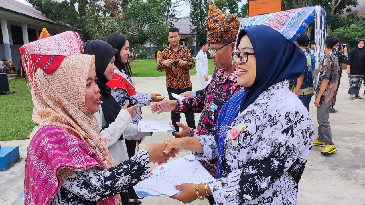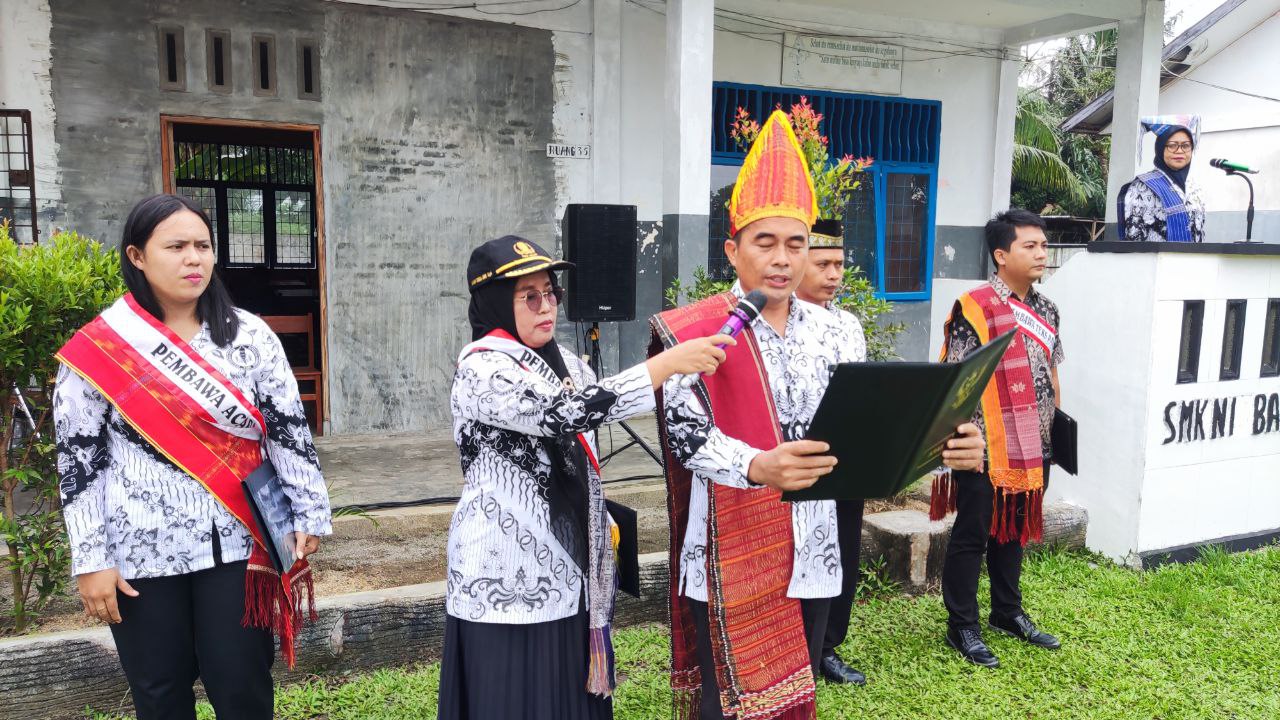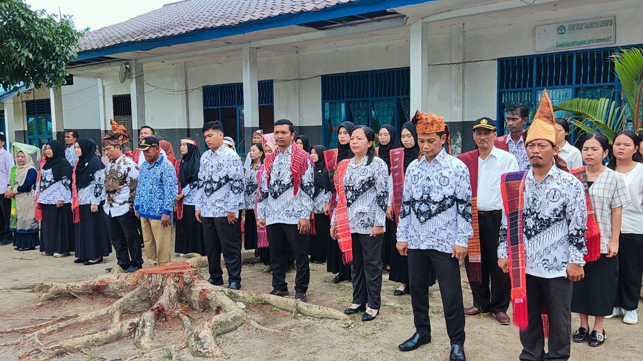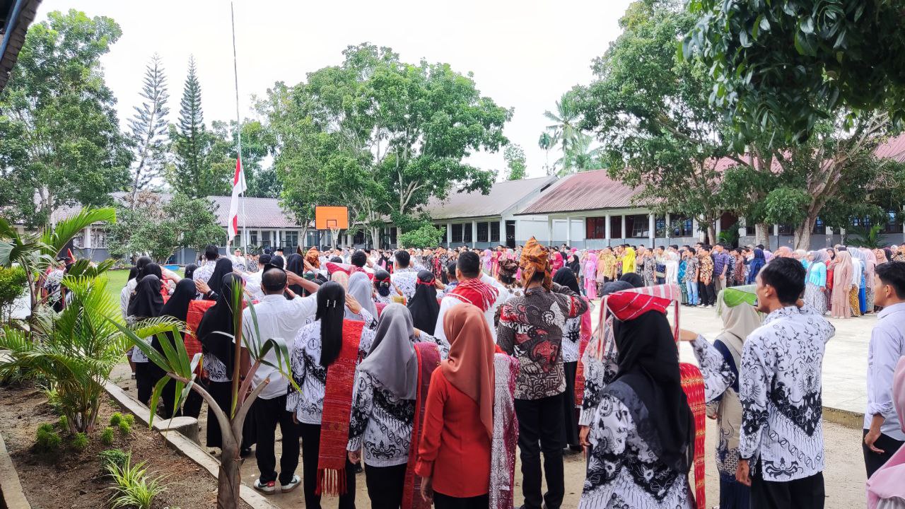 Upacara dilaksanakan dengan begitu khidmat, terlebih lagi Bapak/Ibu guru serta pegawai memakai pakaian dengan atribut adat dari sukunya masing-masing menambah keindahan ketika mata memandang.