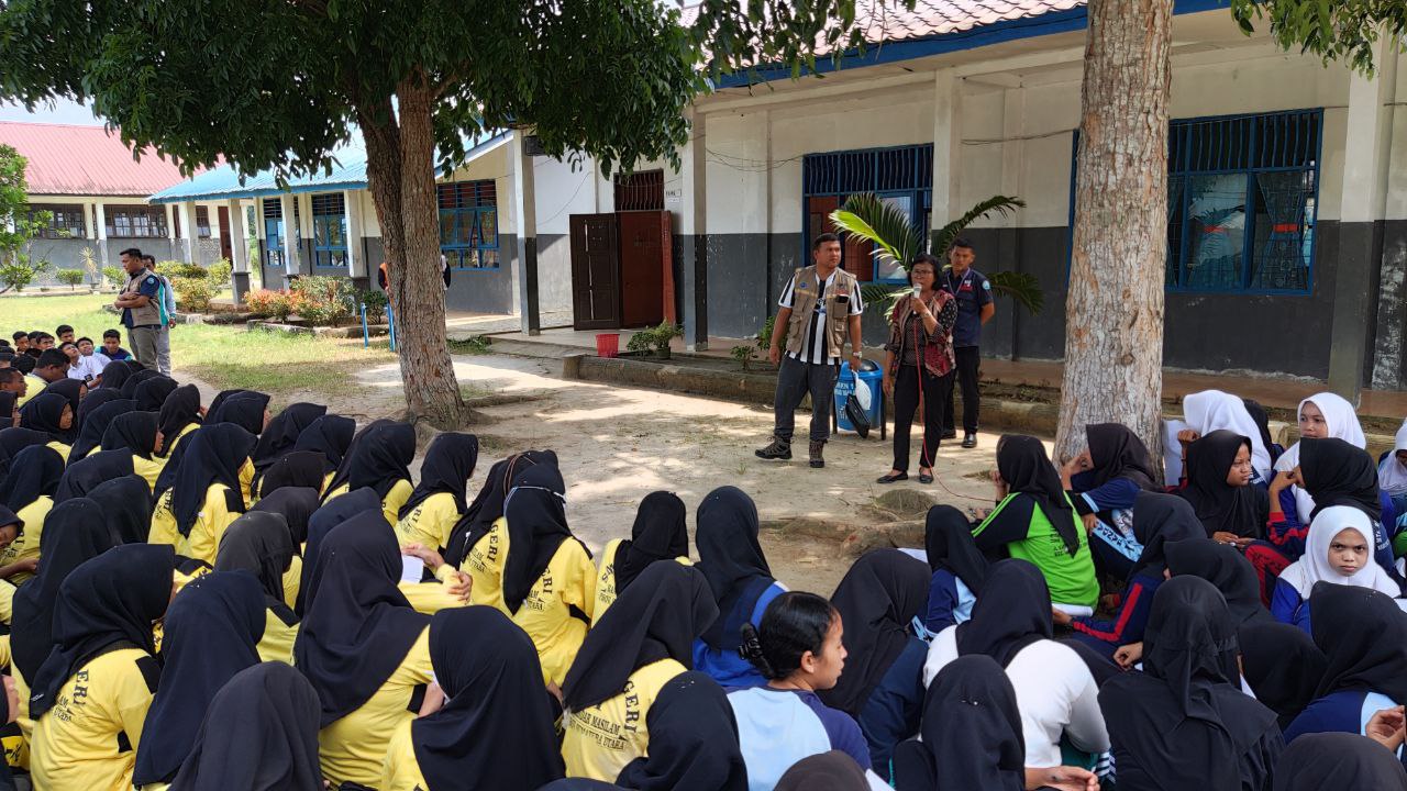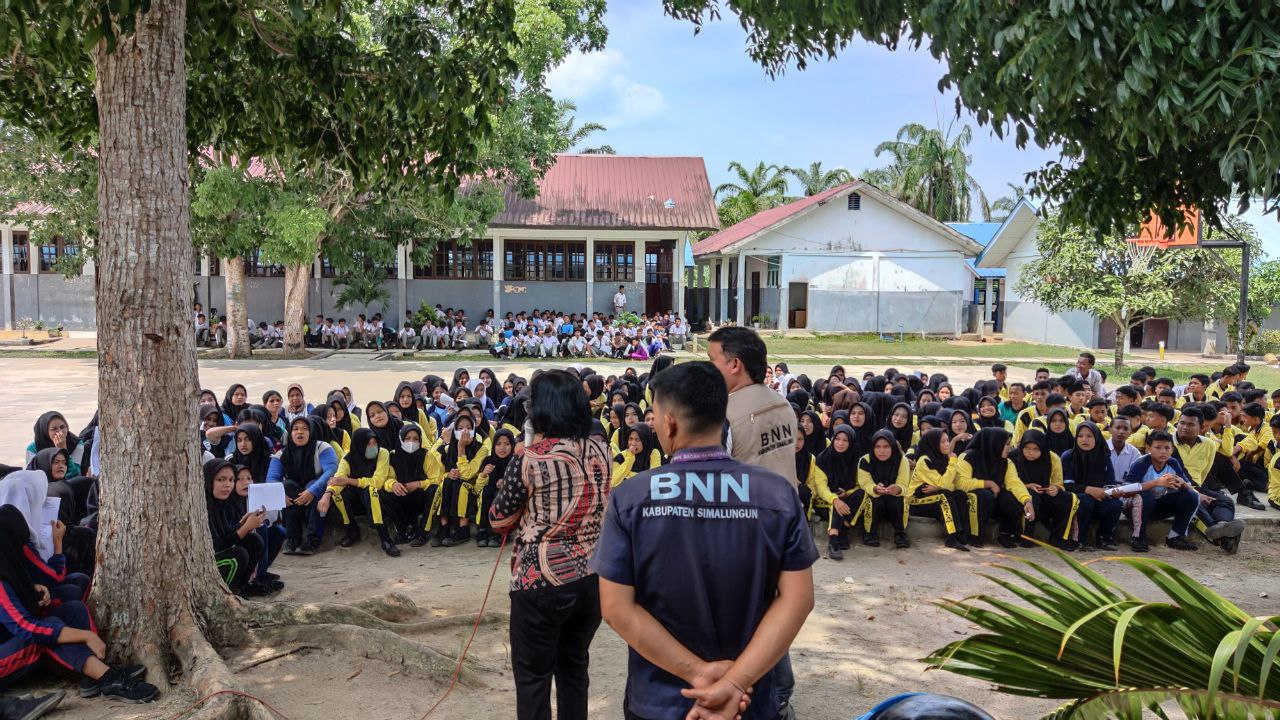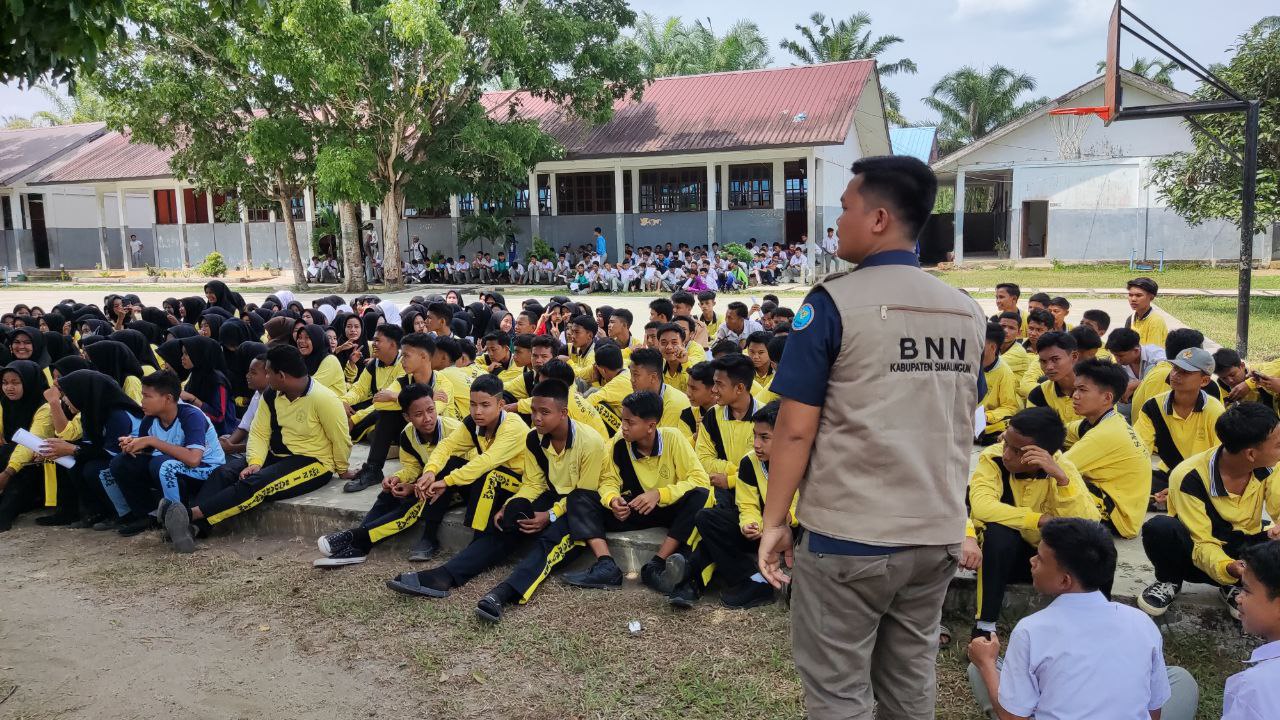 Setelah melakukan tes urin, BNN Simalungun kemudian memberikan sosialisasi bahaya narkoba kepada siswa SMK Negeri 1 Bandar Masilam di lapangan sekolah.